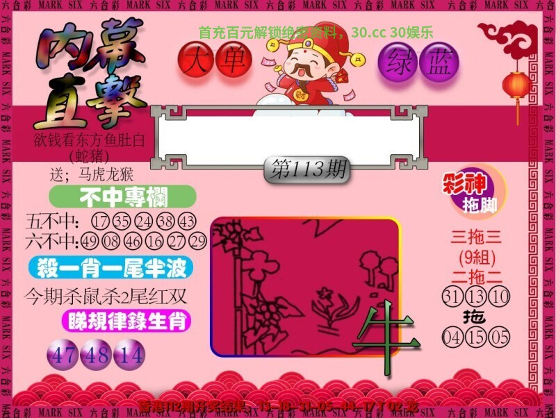102期九肖虎猴猪羊牛马鸡兔鼠30中